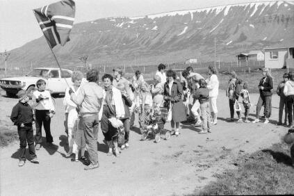 Skrúðganga á 17. júní hófst neðan við Bjarkalund, gengið framhjá Ásbyrgi yfir Hofsá og endað við grunnskólann.