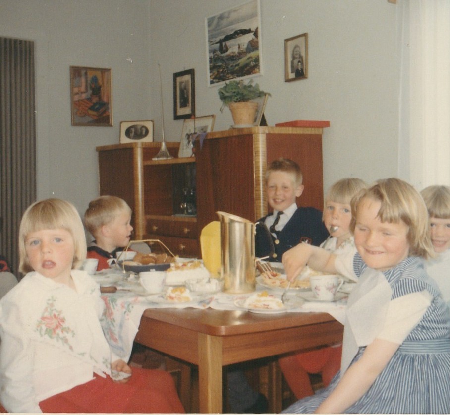 Afmælisboð í Birkihlíð, Hófý, Baddi, Hanna Stína, Bjössi Diddu og tvíbura systurnar í Lyngholti Hulda og Hildur