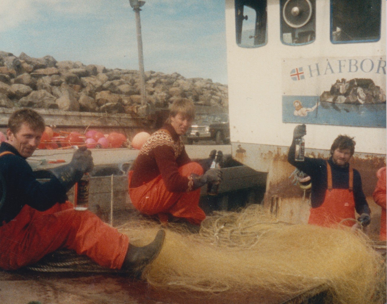 Vertíðarlok, menn að taka áþví í lok vertíðar, Steinþór Nonni og Villi vélstjóri Geirmundsson.