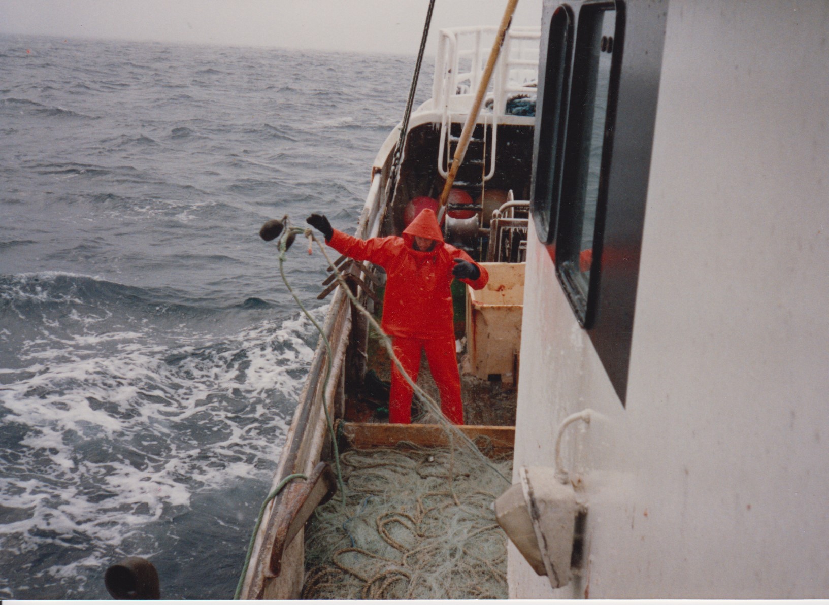 Hér er verið að leggja þorskanet, Nonni yngri í Skjaldborg sér um grjótin. (Nertasteina)