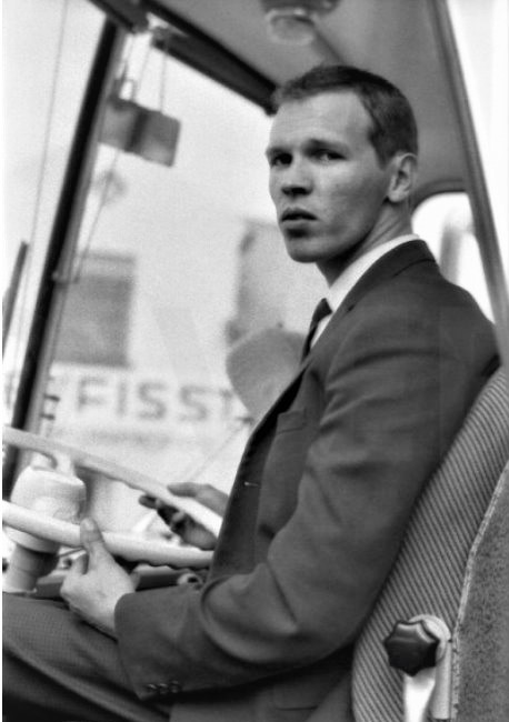 Sigurður Björnsson/Sigg Björns úr Bjarkalundi Hofsós, myndir er tekin á Siglufirði þar sem á húsinu í bargrunninum stendur Sérleifisstöð.