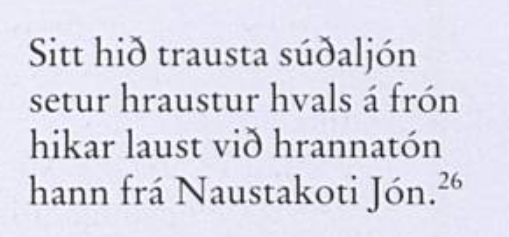 Flest vitum við hvar Naustabærinn stendur, Jón Eiríksson bjó á Nausum, Naustakot var hinnsvegar er til sem þurrabúð og sá er orti þetta um Jón á Naustum notfærði sér það í vísu þessari.á 19. öld.