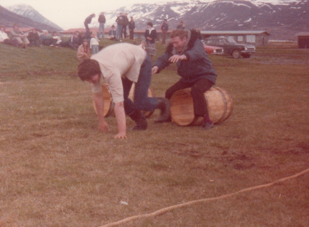 Tunnuhlaup, Stóri Steinn sat fastur í tunnunni en Fúsi í Grænumýri / Sigfús Stefánsson kom honum til hjálpar og tróð honum í gegnum tunnuna.
