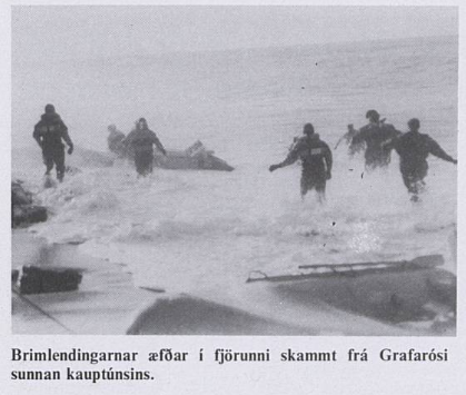 Hérna eru Grettismenn og fleyri björgunarsveitir að æfa brimlendingu við Grafarós.