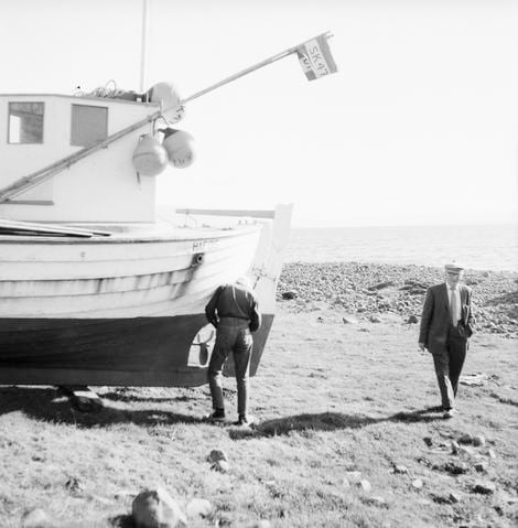 Það er erfitt að átta sig á hver sé að botnmála Hafdísina Hemma og Braga frá Háaskála, þetta gæti verið Hermann eða jafnvel Þorgrímur Hermannsson, gaman væri ef einhver gæti sagt okkur hver er spariklæddur þarna í fjörunni.
