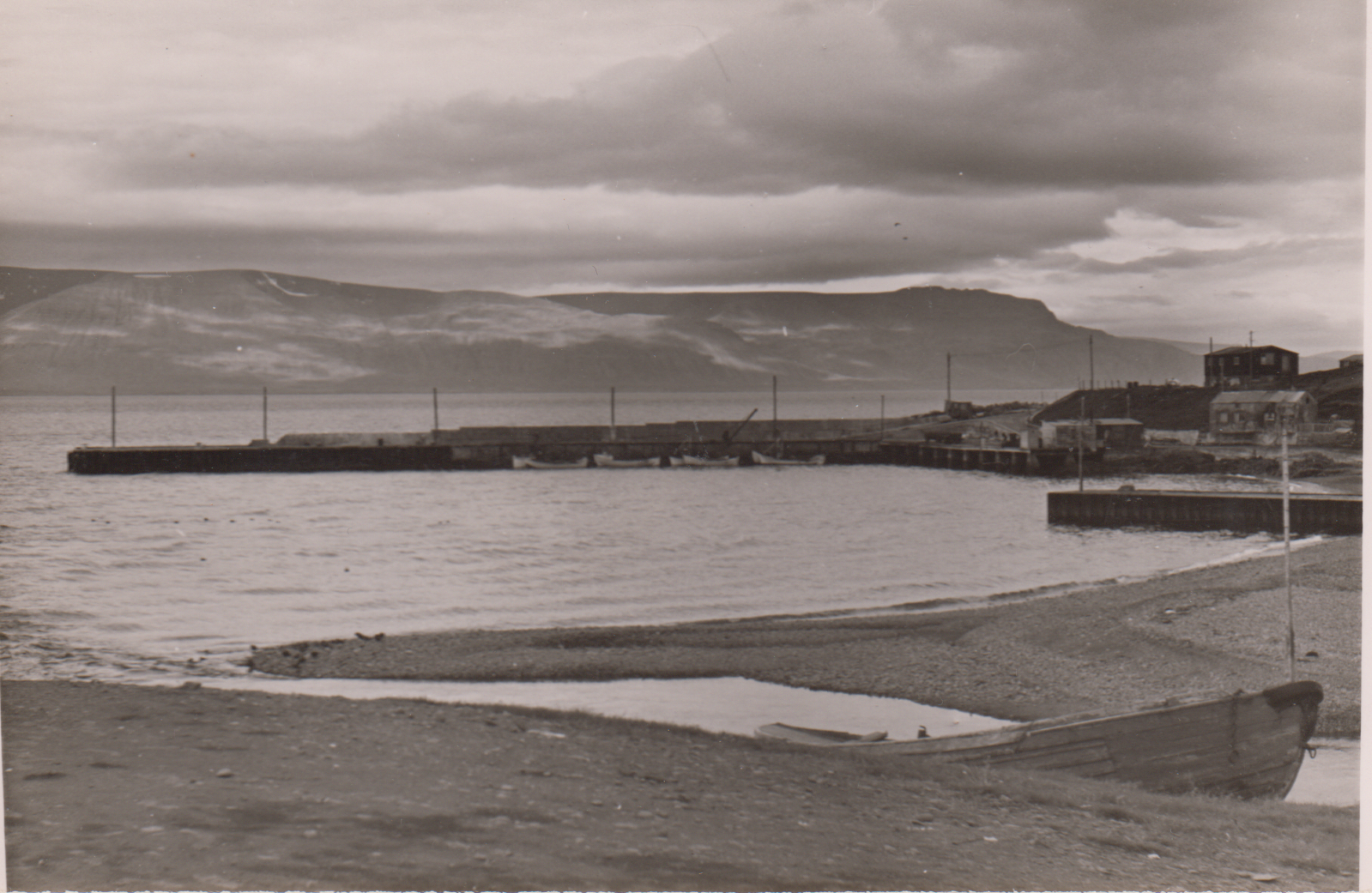 Þessi mynd er tekin 1954 ef rétt er munað sagði Gestur Þorsteinsson mér að uppskipunar bárurinn sem er í forgrunni hafi heitið Stalín.