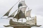 Hérna sést minnisvarðinn um skipið Duggu-Eyvind sem fórst við Hofsós 1717