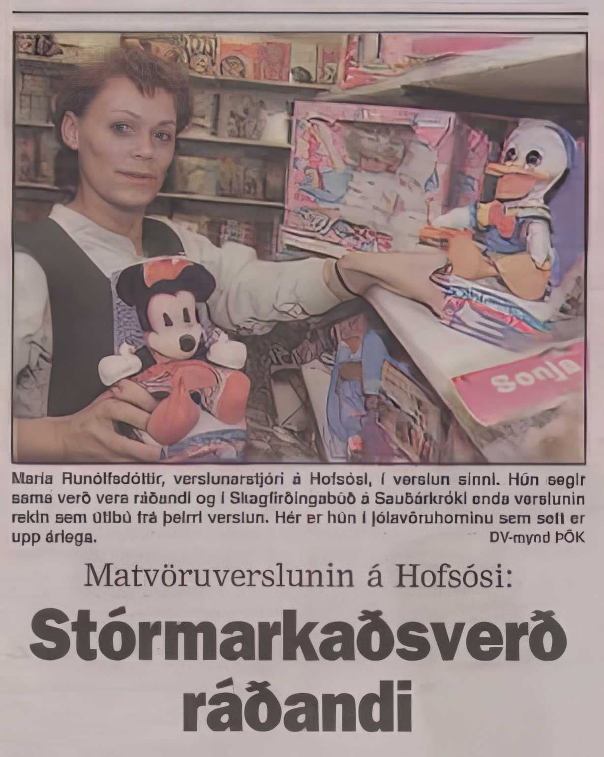 Þegar Mæja var verslunarstjóri í KS Hofsós gerði hún ýmislegt til að bridda upp á vöruúrvalið.