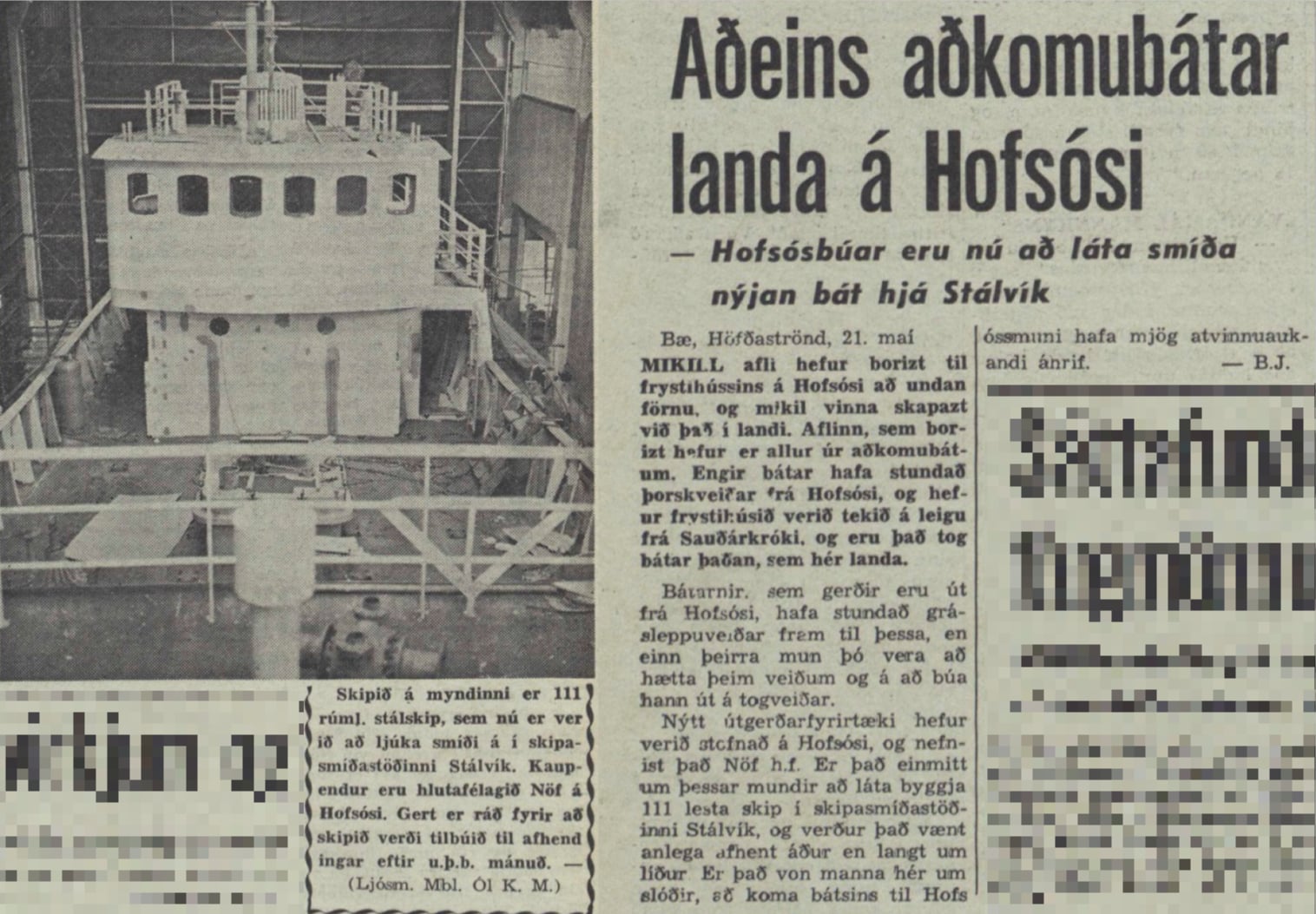 Hvað gerðist á Hofsósi var ein fyrirsögnin í blöðunum, ef hlutirnir voru ekki að gera sig í þorpinu snéru bæjarbúar bökum saman og framkvæmdu nánast því ómögulega 1969 sáu forferður og mæður okkar að eitthvað varð að gera Nöf h/f var stofnað og ráðist var í smíði Halldórs Sigurðsonar þar sem aflabrögð voru nánast engin yfir vetramánuðina, Halldór var smíðaður í skipasmíðastöðinni Stálvík í Garðabæ. Þetta er upphafið af kaupum á Erninum og síðan á Skafta.