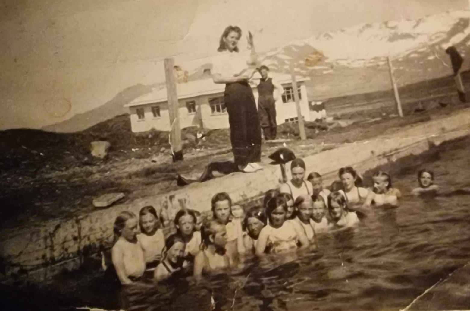 Sundlaugin á Sólgörðum, síðunna vantar hjálp, þekkir einhvern sundkennarann á myndinni eða börnin?