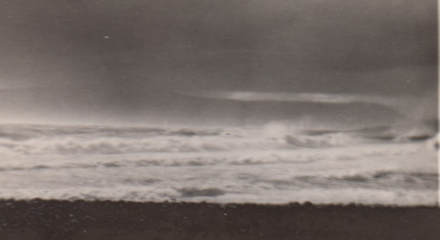 Þessar tvær myndir fann ég í litlu myndasafni Sveins Jóhanssonar, þessar myndir voru á stökum plastfilmum sem virtust við fyrstu sín vera orðnar glærar, en við framköllun komu þessar óveðurs myndir í ljós, við þessar aðstæður gerði Sveinn út frá Hofsósi megnið af árinu og við þessar aðstæður misti hann einn báta sinna (Sæfuglinn) sem slitnaði frá bryggju í svona óveðri og rek upp undir planið og brotnaði í spón, Sveinn var með legufæri þar sem nú er svonefndur fingur út úr suðurgarðinum og kom gamla akkerið hans upp þegar verið var að vinna við suðurgarðinn, bátarnir á þessum árum þurftu oft að forða sér frá bryggju og fara til annarra hafna en það kom fyrir að menn höfðu ekki tíma til þess þegar veður breittist snögglega, menn höfðu einnig legufæri inni á svonefndu Rifi og þurftu bátar stundum að liggja þar dögum saman í slæmum veðrum.