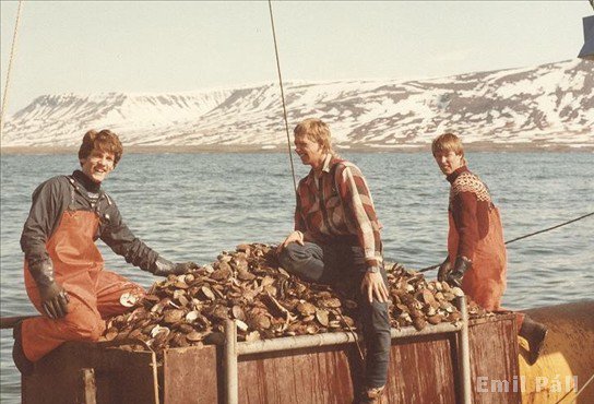 Strákarnir á Borginni / Hafborg Ómar, Gunnar Heiðar og Jón í Skjaldborg. Hér eru þeir á Hörpudiskveiðum.