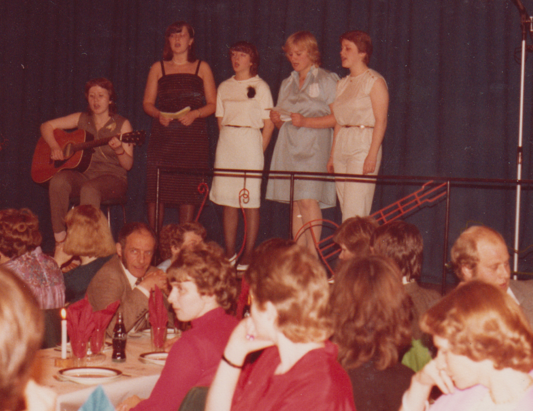 Ég held að þessar ungu konur hafi kallað sig Sóldísir en þær sáu um söngatriðin á þessari árshátíð.