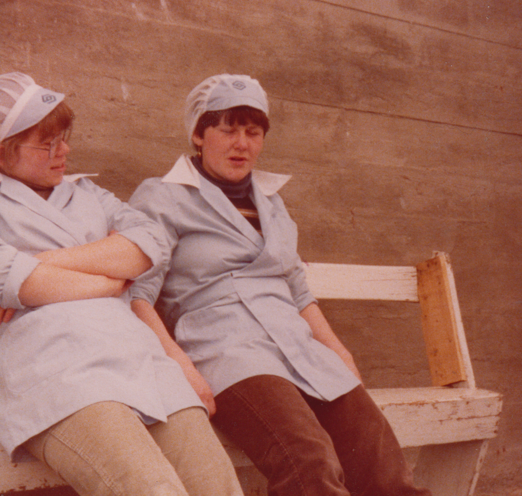 Það var gott að láta líða úr sér á bekkjunum við suðurvegginn á frystihúsinu.