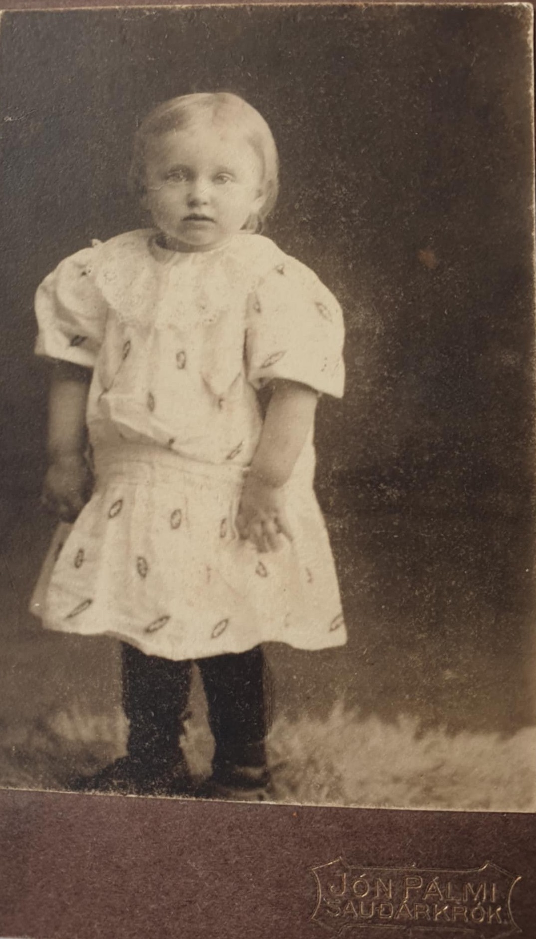 Þetta er merkileg mynd, fyrir það fyrsta er að aldrei höfum heyrt af þessari stúlku allavegana ekki við sem gerum þorpsíðuna út. Takk fyrir þessa sendingu Þórdís Friðbjörnsdóttir. Þessi unga snót var Björg Eiríksen frá Naustum sem flest okkar vitum að er bærinn við Naustavíkina rétt norður af þorpinu.