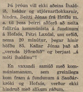 Maður er varla búinn að birta frétt þar sem segir að engin pólitík sé í þorpinu, hún var allavegana þegar þessi frétt var skrifuð 1935
