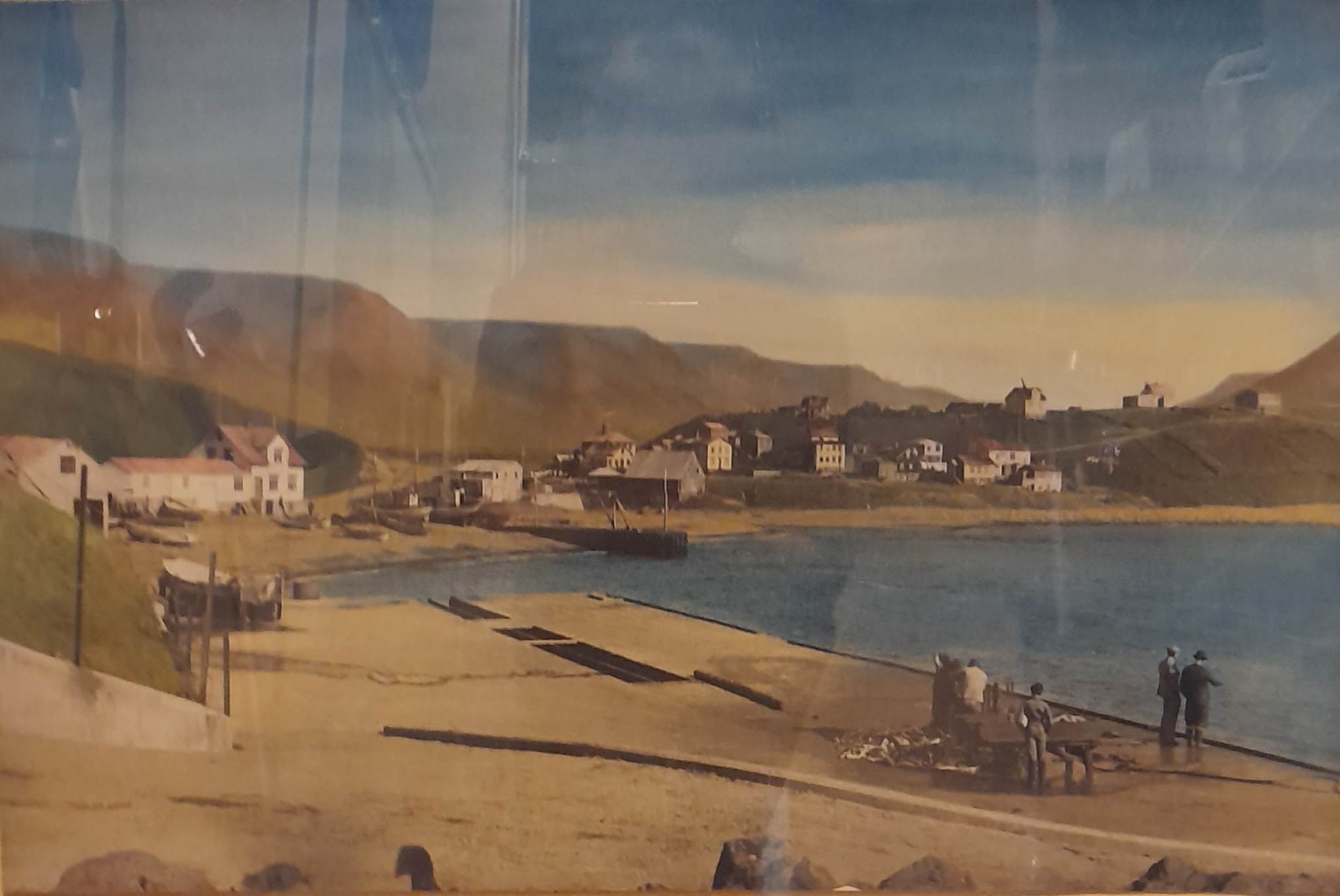 Það væri gaman að vita hvort einhver veit hvaða ár þessi er tekin? Þaena má sjá húsið undir nöfinni sem Sveinn og Klara byrjuðu sinn búskap sinn áður en þau byggðu Suðurbraut 5 Einnir sést vel í gamla sláturhúsið sem stendur vestan við brúna.
