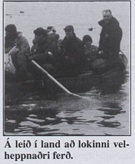 Hópur vaskra sveina í Málmeyjarferð þar sem lending í fjörunni á eynni var löguð við jarðfallið þannig að öruggara væri aðkoma með ferðamenn í eynna.