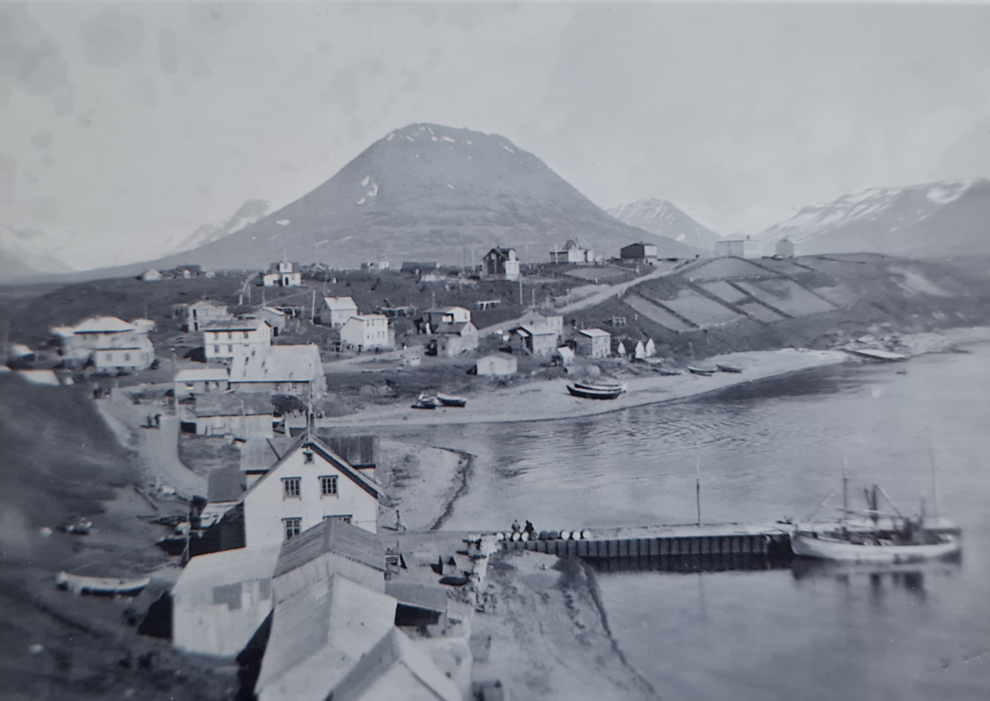 Hér má sjá bát við gömlu bryggjuna sem Skafti á Nöf átti, báturinn hét Úlfur Uggason.