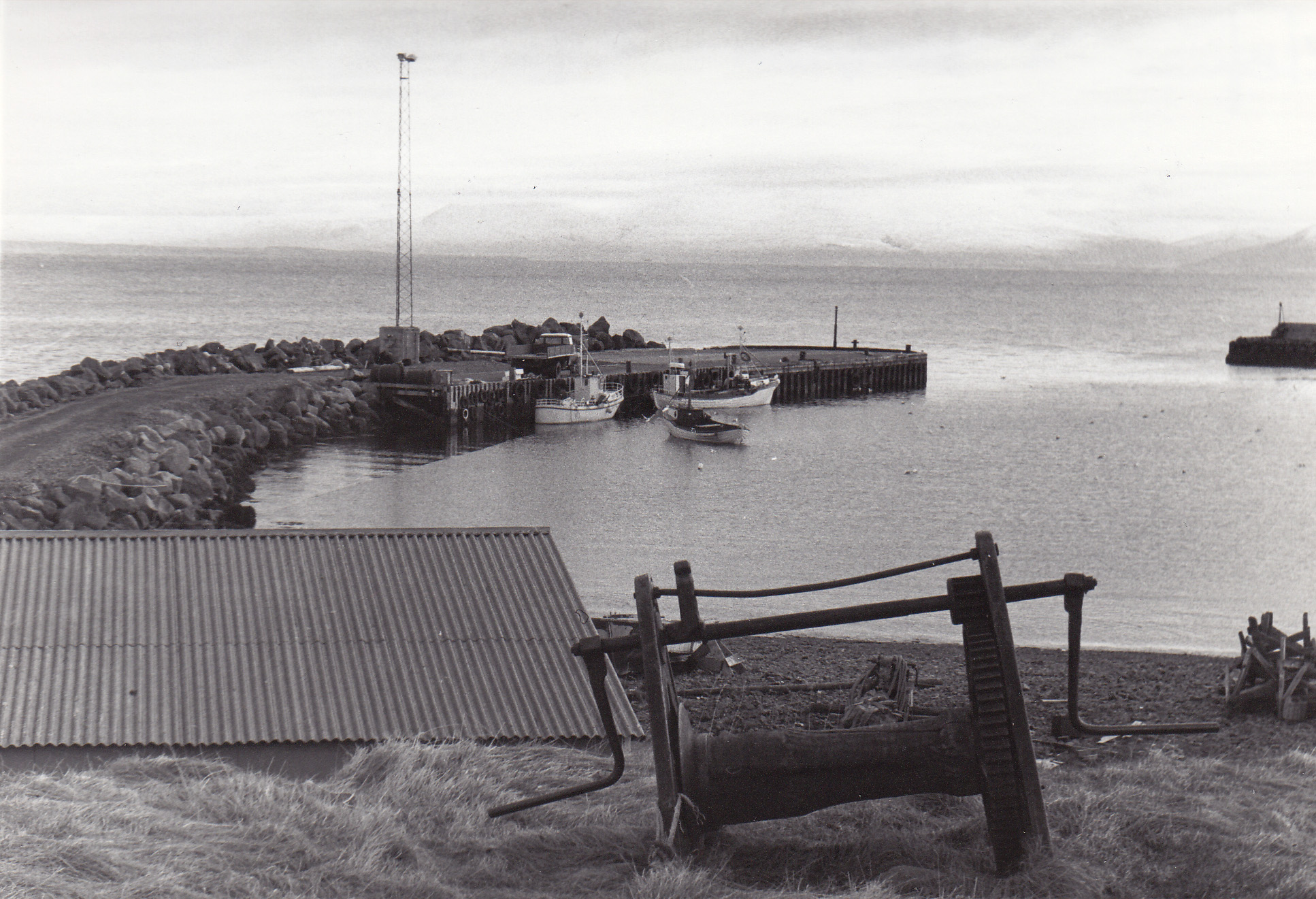 Hafsteinn SK 119 og Hafdís SK 47 við Suðurgarðinn og sennilega vitaskipið þeirra Kjartans á Tjörnum og Leifs á Miklabæ. Hvað ætli hafi orðið af þessu spili sem er upp á bakkanum ofan við Árver? Spil sem var að öllum líkindum frá Sveini Jóhannssyni.
