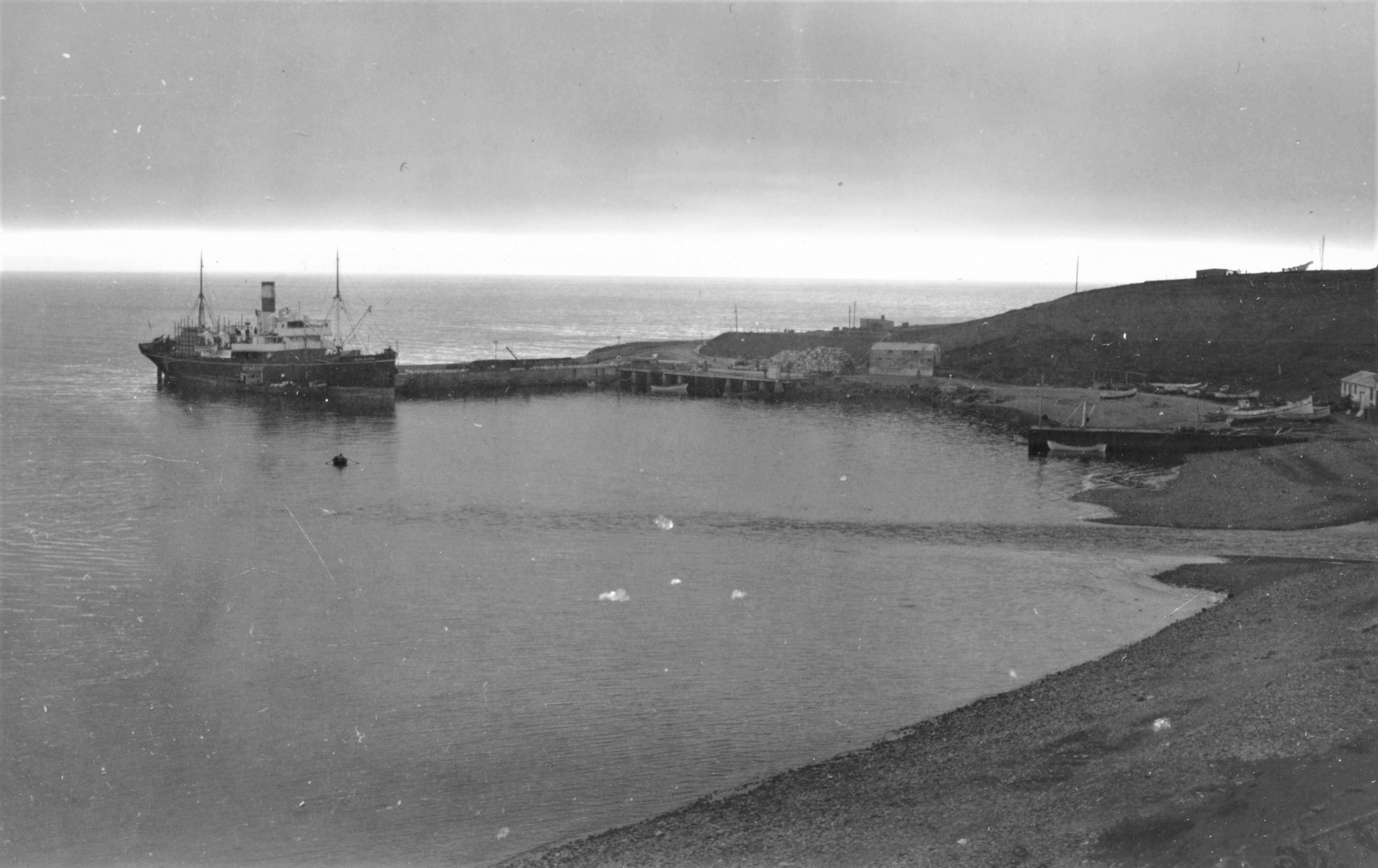 Ef þessi mynd er stækkuð þá má greinilega sjá sílartunnur sem er verið að skipa upp úr þessu skipi og þeim staflað á planinu undir Nöfinni, síld var allavegana söltuð árið 1946 - 47 þá er þessi mynd eflaust frá þeim tíma.