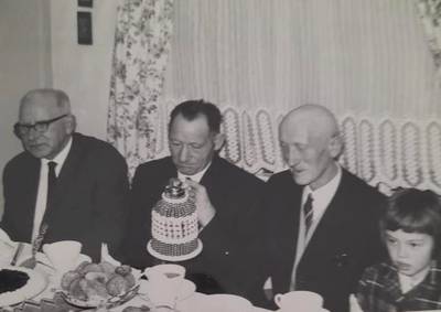 Það var alltaf mannmargt í Bæ. Þarna er meðannara gamli læknirinn okkar í þorpinu.